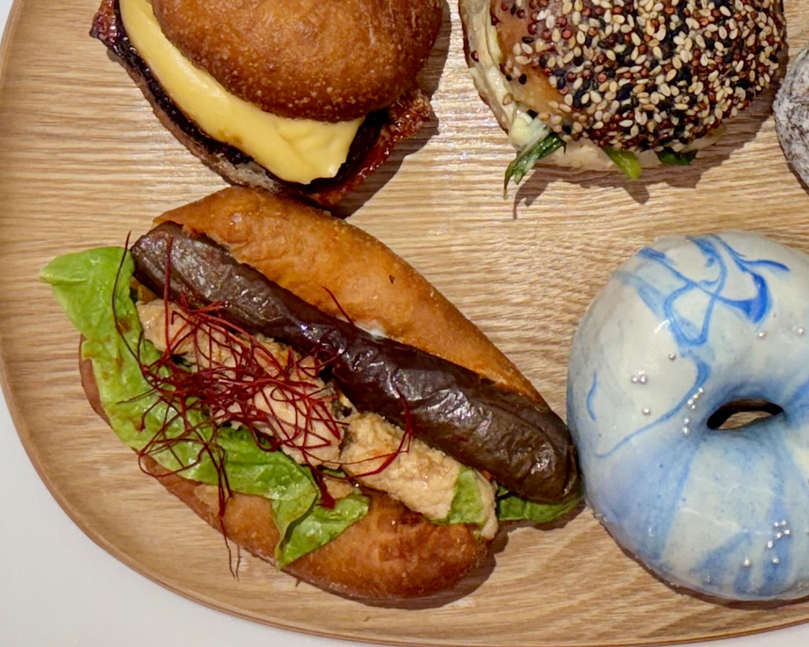 京野菜・賀茂茄子と甘辛そぼろあんを合わせた総菜系のドーナツ。そぼろあんは下味がしっかりとついており、一般的なそぼろよりも肉感を感じることができます。ジューシーでとろけるような食感の賀茂那須を堪能できる京都店ならではのおいしさです。