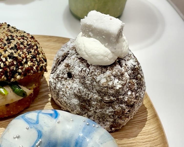 ほうじ茶生地の生ドーナツにココナッツクリームと自家製わらび餅を合わせた、和と洋が融合したフレーバー。この組み合わせにいままで出会えなかったことが不思議なほどベストマッチ!ココナッツが持つトロピカルなミルキーさが、従来のクリームとまた異なった魅力を放ちます。