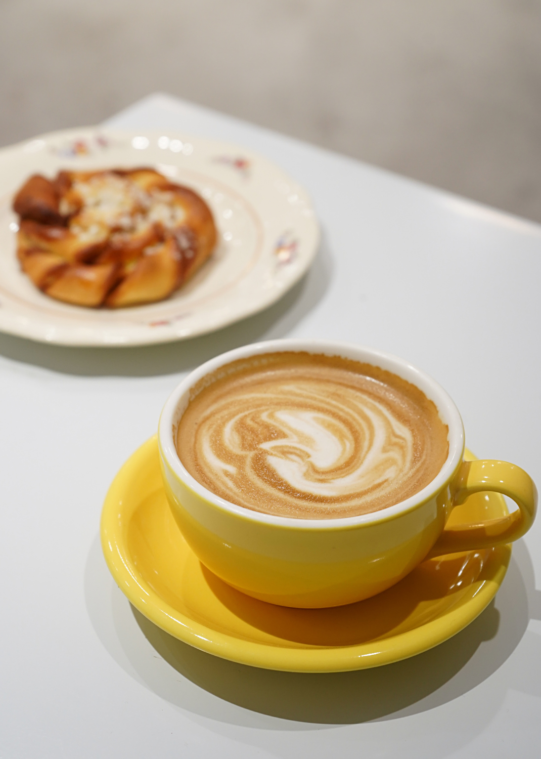 オーツミルクのすっきりとした味わいはコーヒーの旨味を消さず、とてもまろやか。口当たりのやわらかさに思わずシナモンロールを浸したくなる。