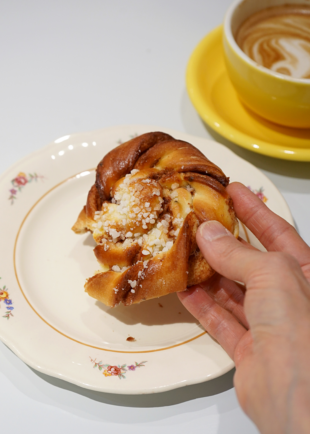 ゆっくり食べようにも、鼻をくすぐる香りに手が止まらない。カルダモンのあと口の中に溶け出すシナモンと砂糖の甘い余韻がコーヒーを誘う。