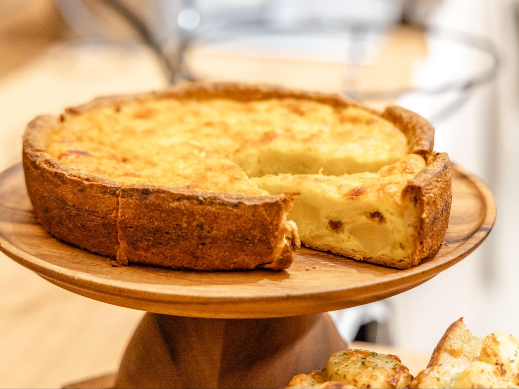 「スモークサーモンのキッシュ」は、クロワッサン生地の芳醇な香りとサーモンの旨みが重なり合い、ランチにもぴったりなボリューム。