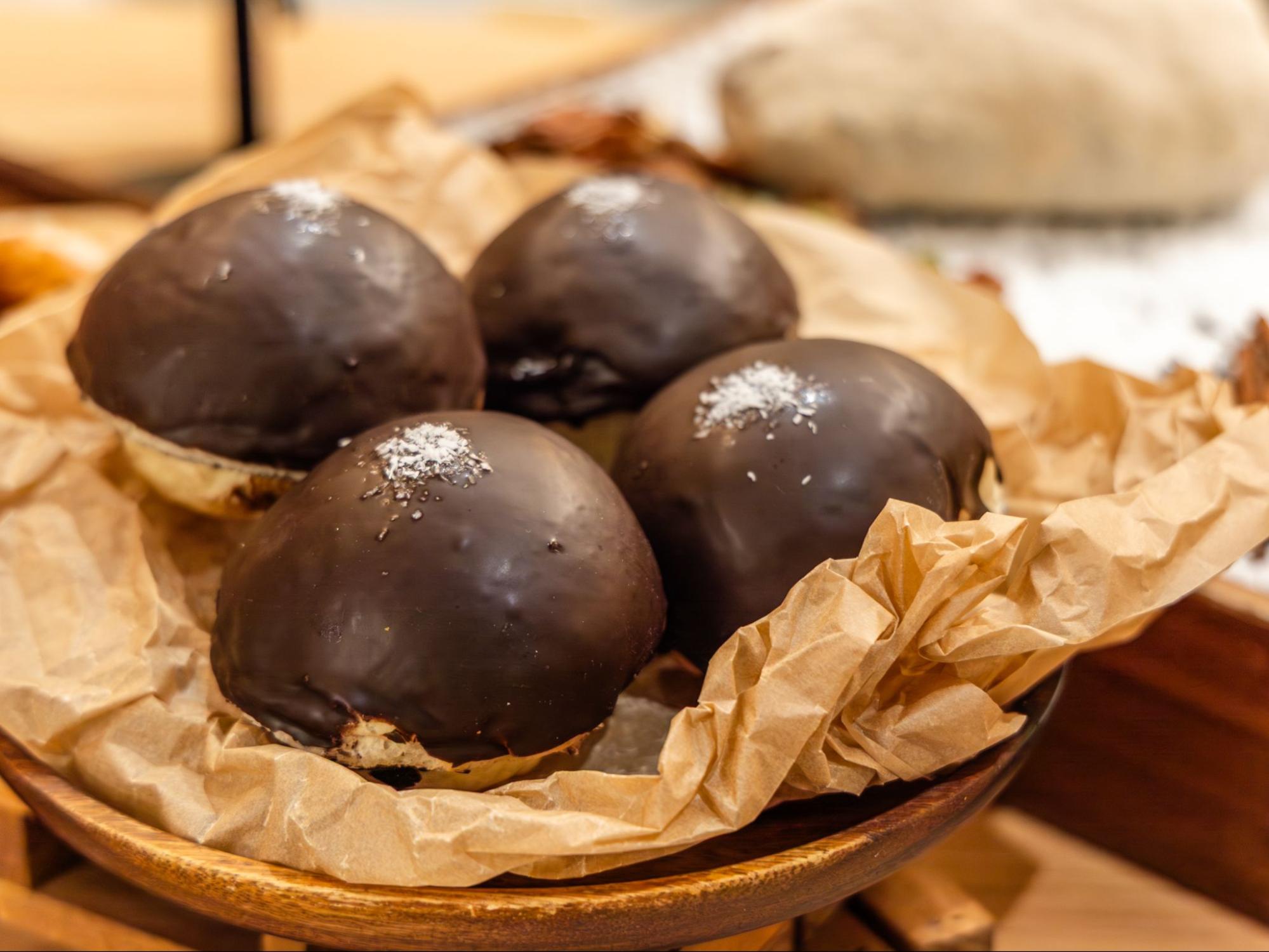 「パン ア ラ クレーム ショコラ」は人気のクリームパンをチョコレートでアレンジ。ココナッツの香ばしさがアクセントになり、贅沢なスイーツパンのよう。