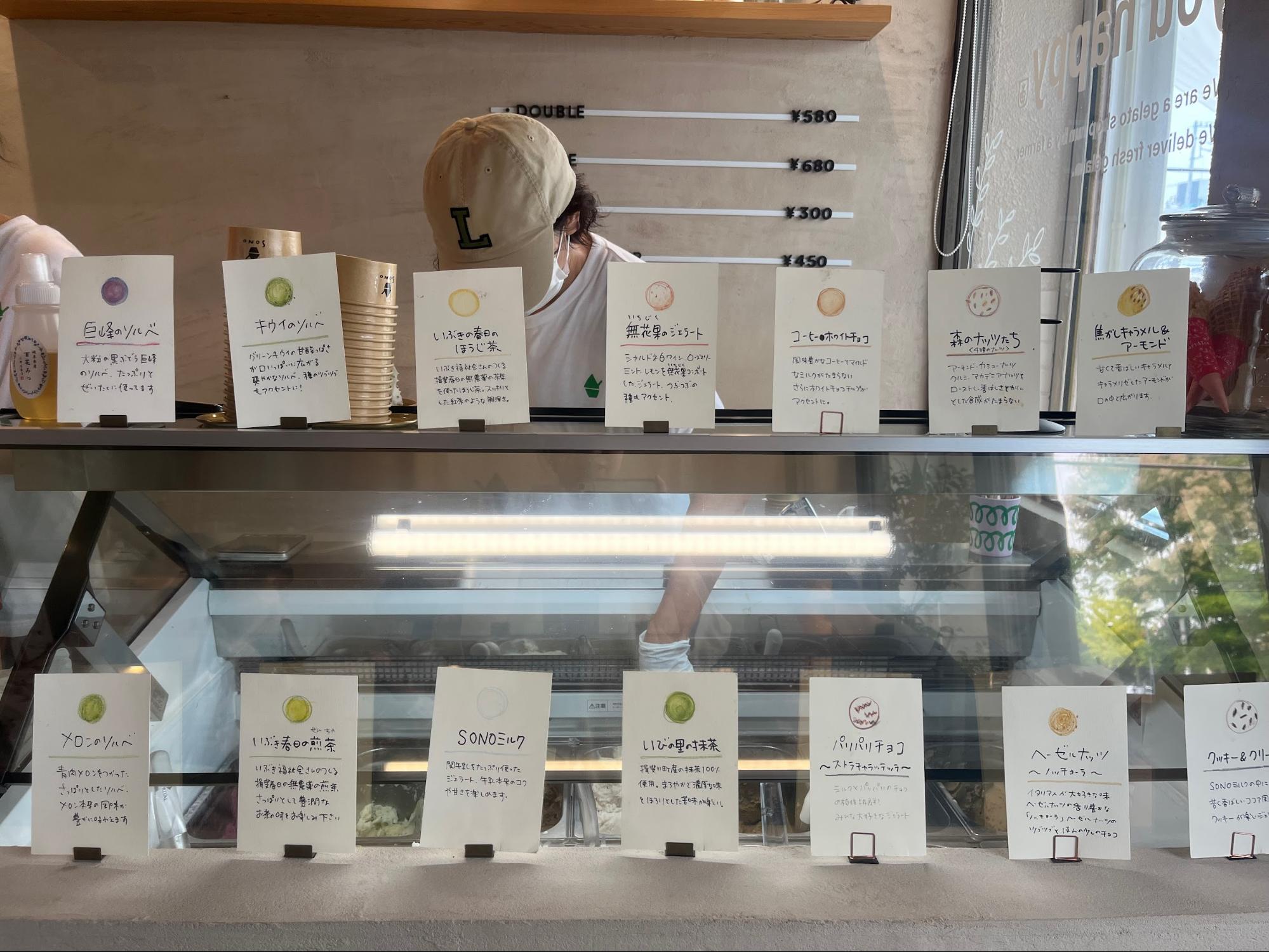 定番のフレーバーはもちろん、旬の素材やご当地の素材を使った新作フレーバーも登場する「農家のクラフトジェラート店 SONO」。