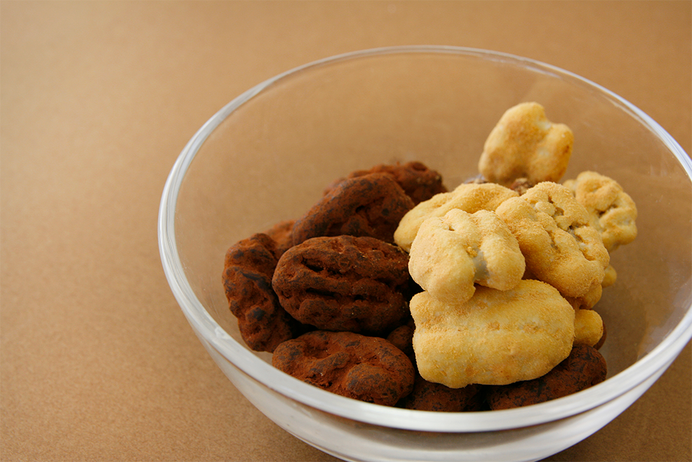 コクのあるやさしい甘さが魅力の「キャラメル」と、キリっとしたほろ苦さが印象的な「ココア」は、どちらも思わず「もうひと粒」と手が伸びてしまう、納得の味わいです。