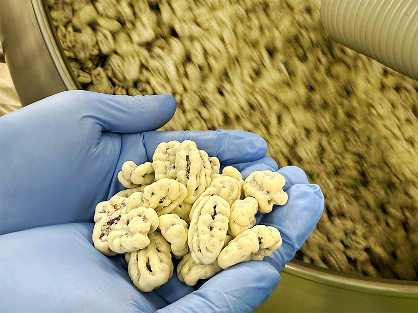 大粒のペカンナッツながら、口に入れると軽やかにほどける食感が印象的。