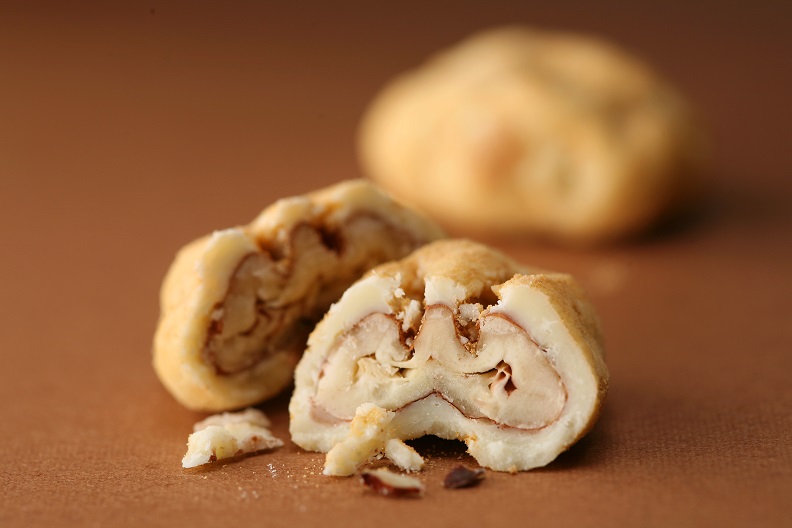 もともと、ペカンナッツはくるみに比べて渋みが少なく、まろやかな甘みが特長。グランプラスでは、このペカンナッツをチョコレートでコーティングする直前にローストすることで、香りと風味を最大限に引き出す工夫を行っています。