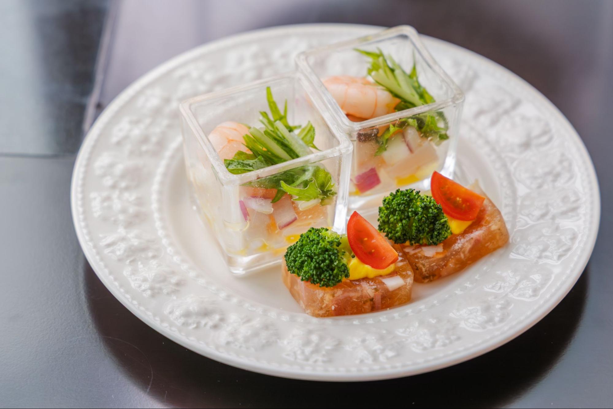 冷たい前菜と温かい料理がバランスよく並び、温かいメニューは別皿で提供されるので、最後まで香りや食感を心地よく楽しめます。