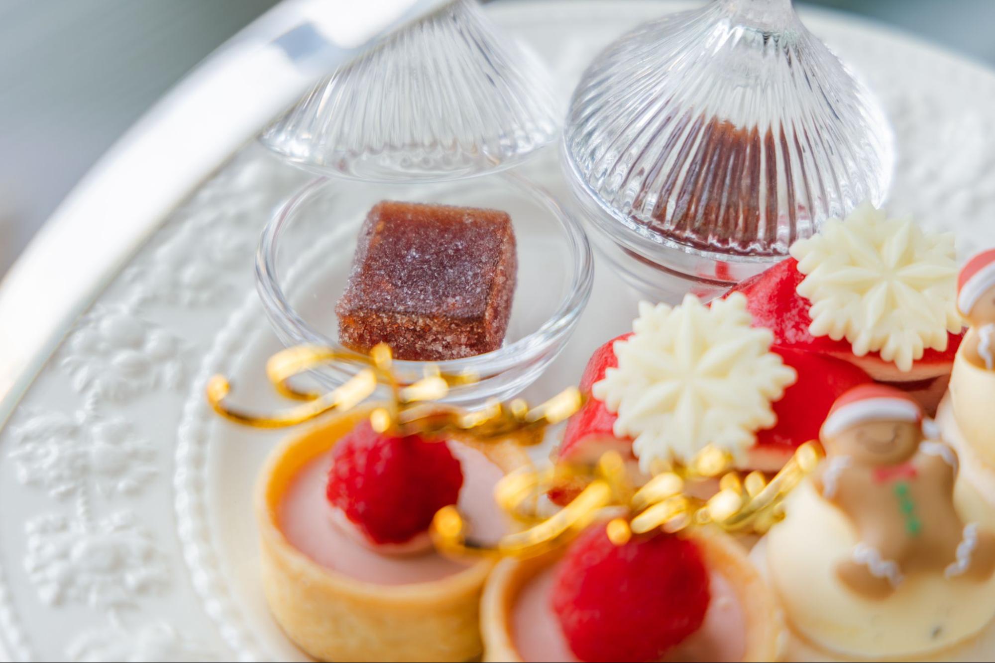 白銀の世界を思わせるティーセットと、クリスマスカラーのスイーツやセイボリーで彩られるひとときは、冬のご褒美にふさわしい特別なティータイムを堪能できます。