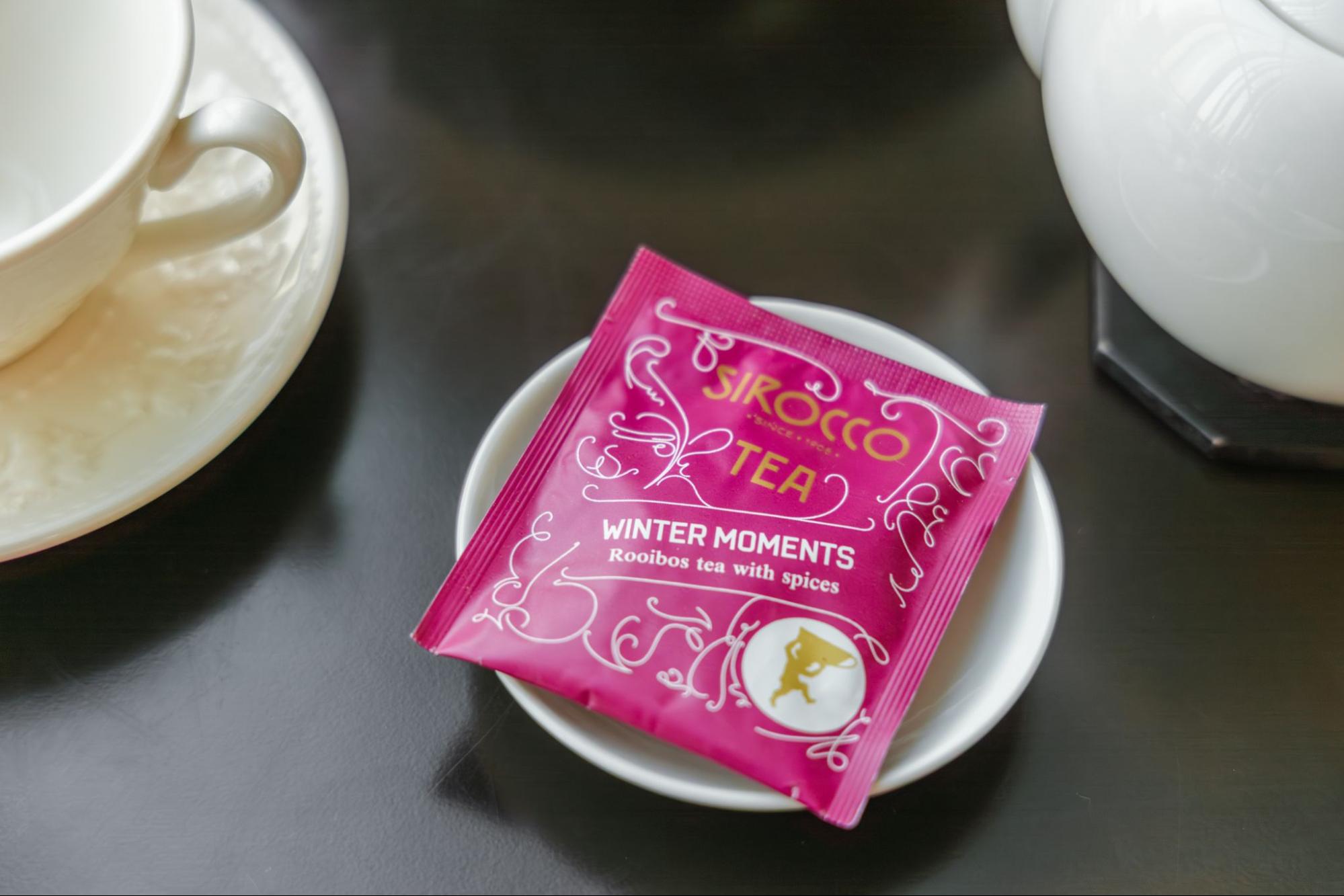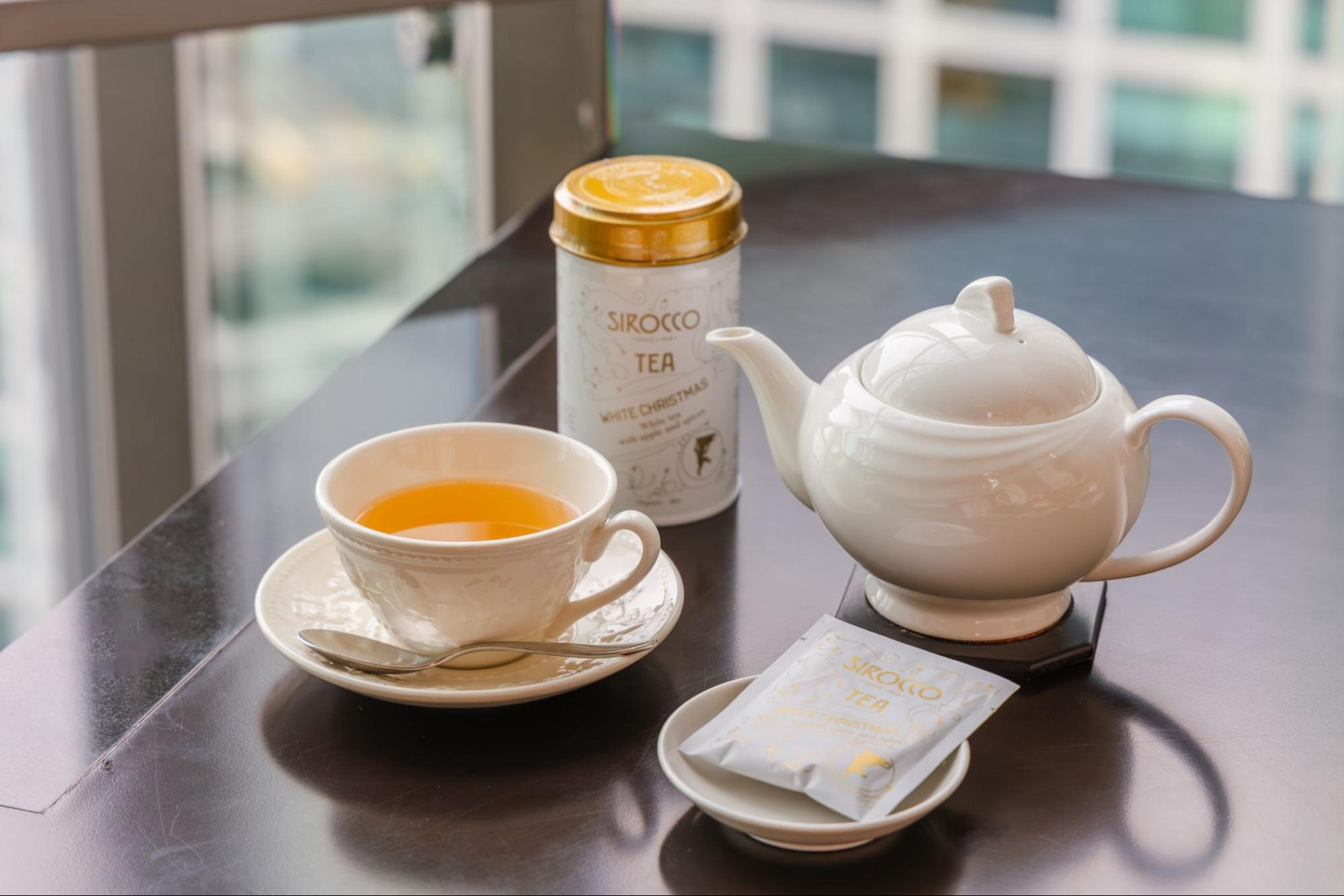 席に着くと最初に届けられるのが、スイスのティーブランド・シロッコの「WHITE CHRISTMAS(ホワイトクリスマス)」。