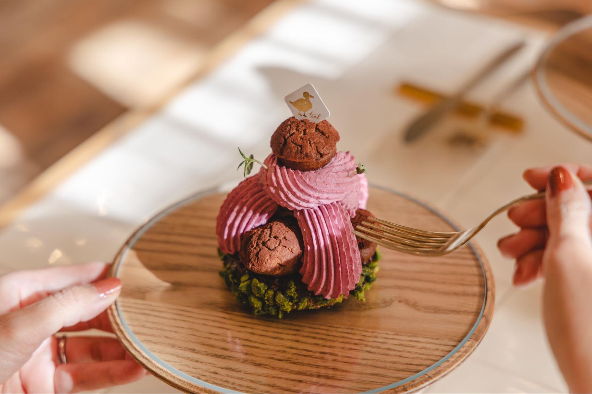 「tealとICCAのサントノーレ」(¥1,680/税込)は、眞砂翔平シェフが手がけた思わず見とれてしまうほど美しいひと皿。