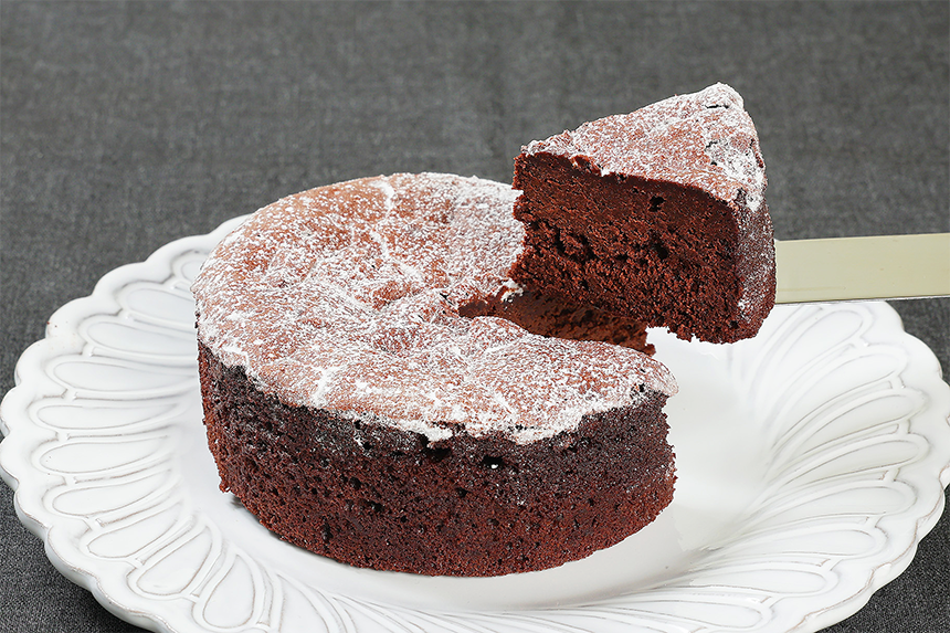 オーガニックチョコレートを贅沢に使い、湯煎でじっくりと焼き上げられています。