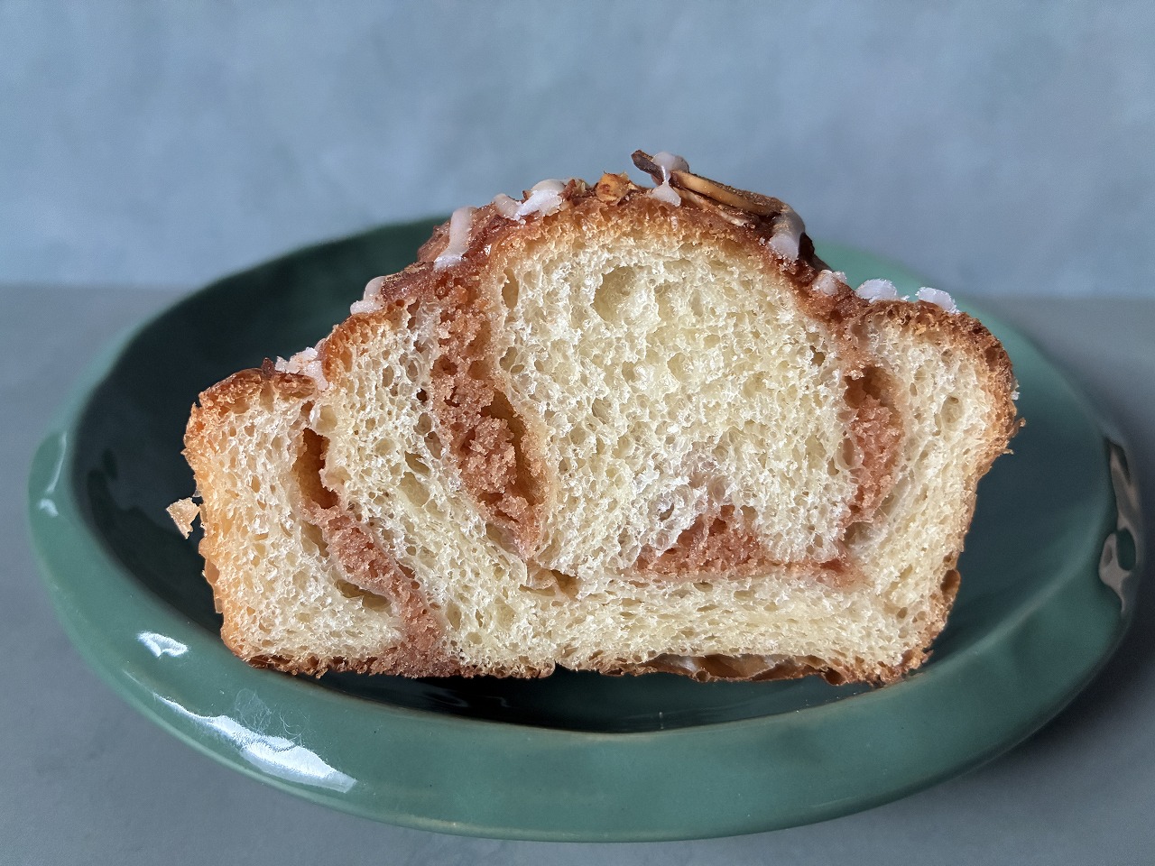 アイシングの甘さはしっかり感じつつも、アーモンドのほろ苦さが後味を引き締め、全体としては甘すぎないバランス。おやつにも、コーヒーと合わせてゆっくり味わいたい“大人のシナモンロール”です。