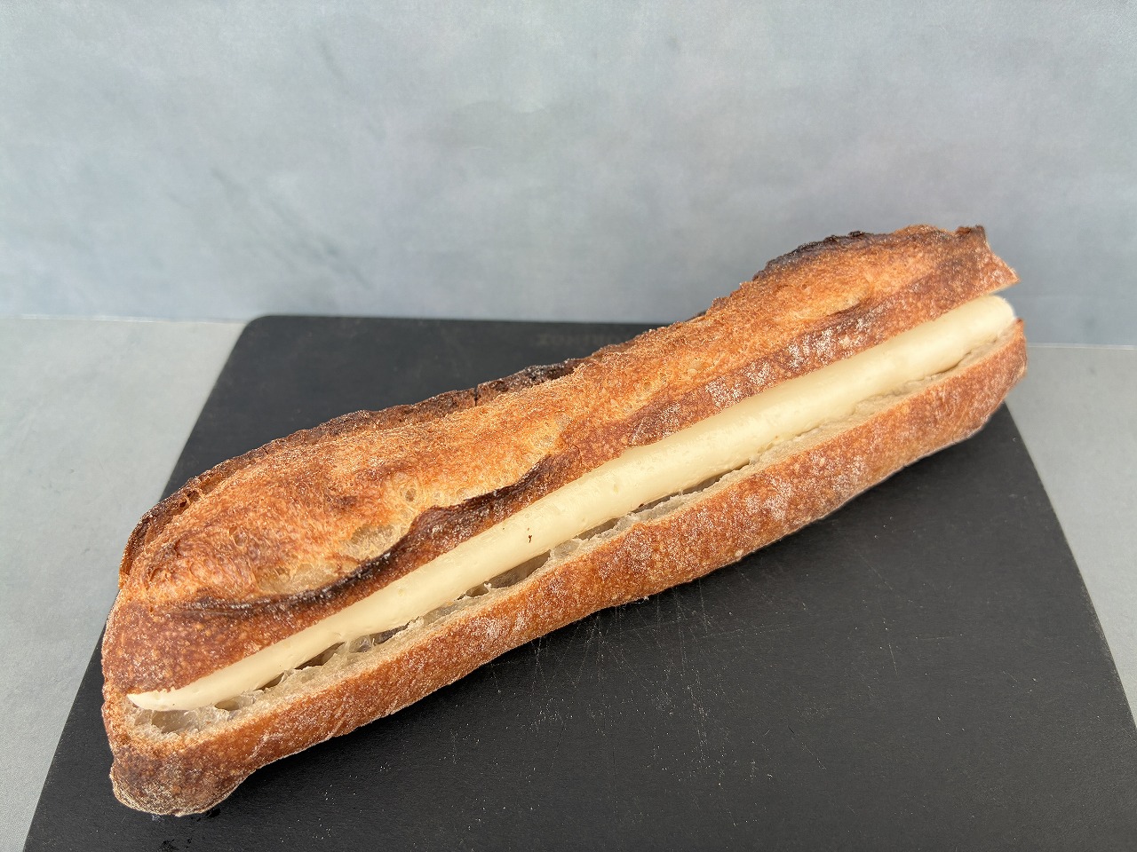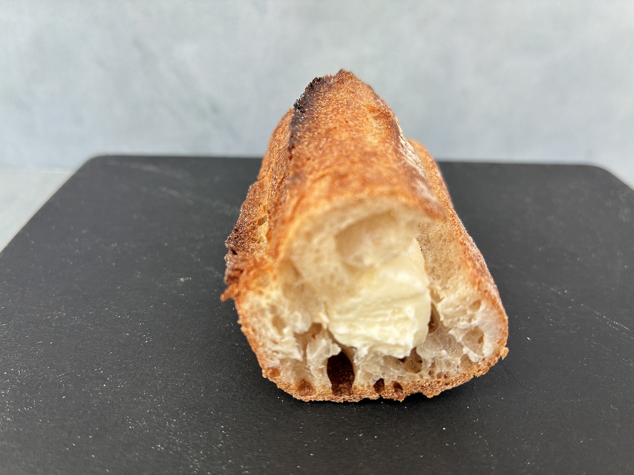 香ばしく焼かれたバゲット生地は、粉の旨味がしっかりと感じられ、クープ部分のカリカリ感もたまりません。ミルククリームはやさしい甘さの中にコクがあり、全体のバランスも秀逸です。