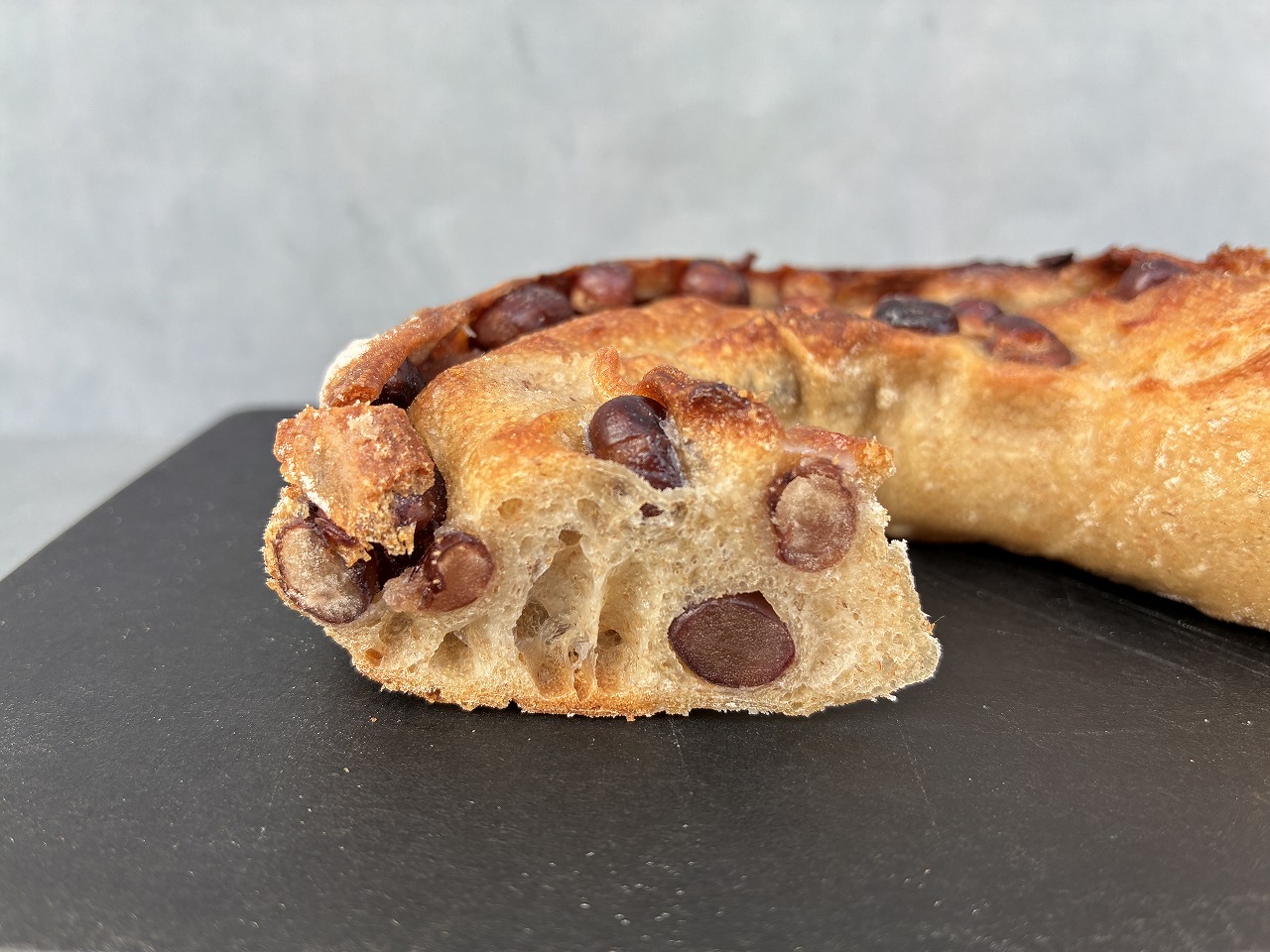 バターのコクがじゅわっと広がり、大納言のやさしい甘さを包み込むような味わい。それでいてバゲット生地ならではの軽さがあり、後味はすっきり。最後までしつこさを感じさせません。