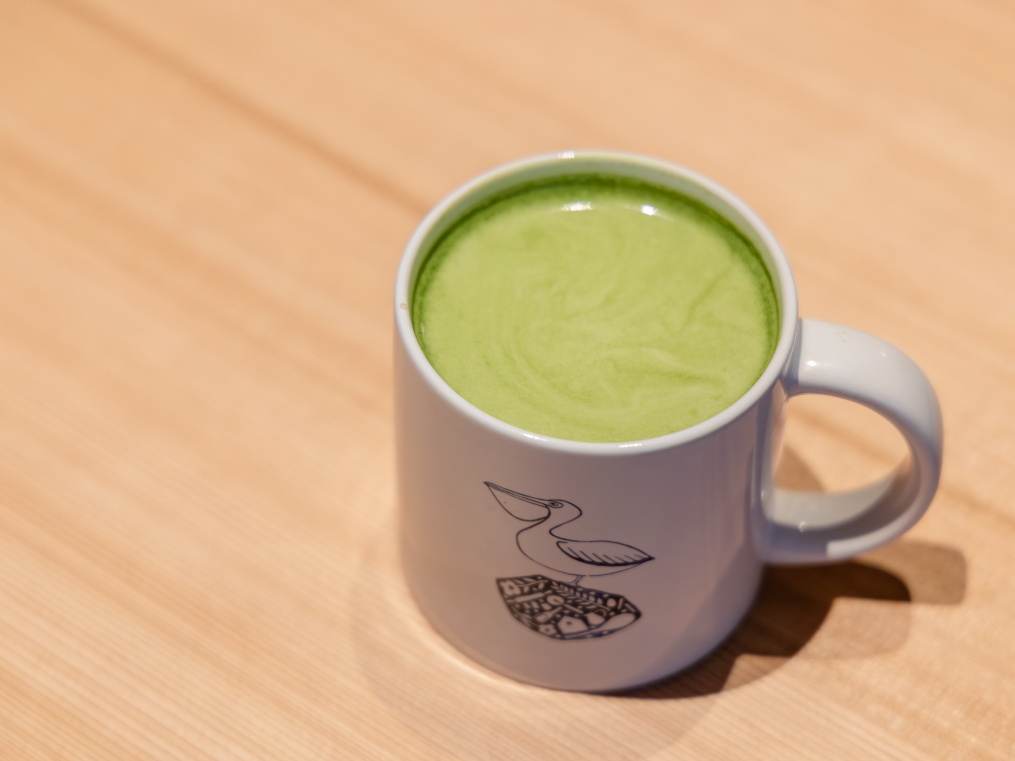 八女抹茶ラテは、抹茶の旨みとほどよい苦味のバランスがよく、焼き菓子の甘さを引き立ててくれる一杯。