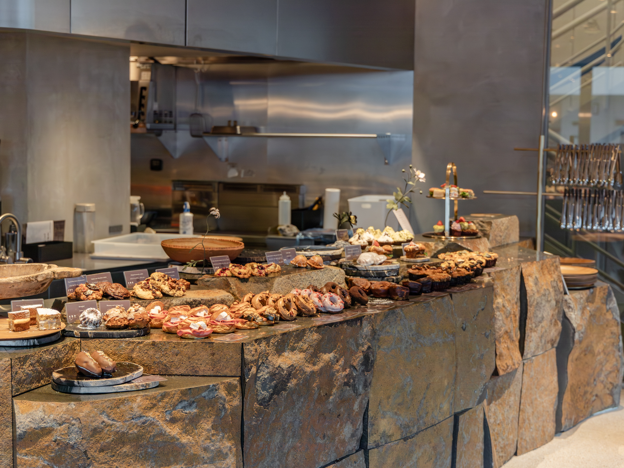 石と木に包まれた落ち着いた空間で、ゆっくりと味わう午後。表参道にいながら、少しだけ日常から離れたような感覚を味わえます。