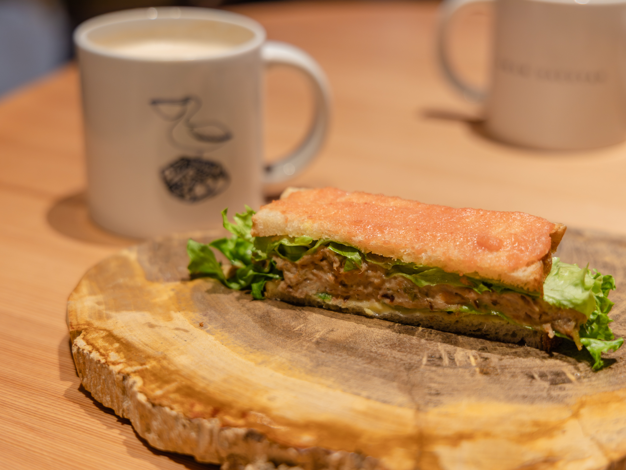 自家製ツナの明太サンドは、見た目以上に食べ応えのある一品です。上にのせられた明太子は焼かれておらず、生ならではの旨みと塩味が印象的です。ツナのまろやかさと合わさることで、重たさを感じさせない仕上がりに。