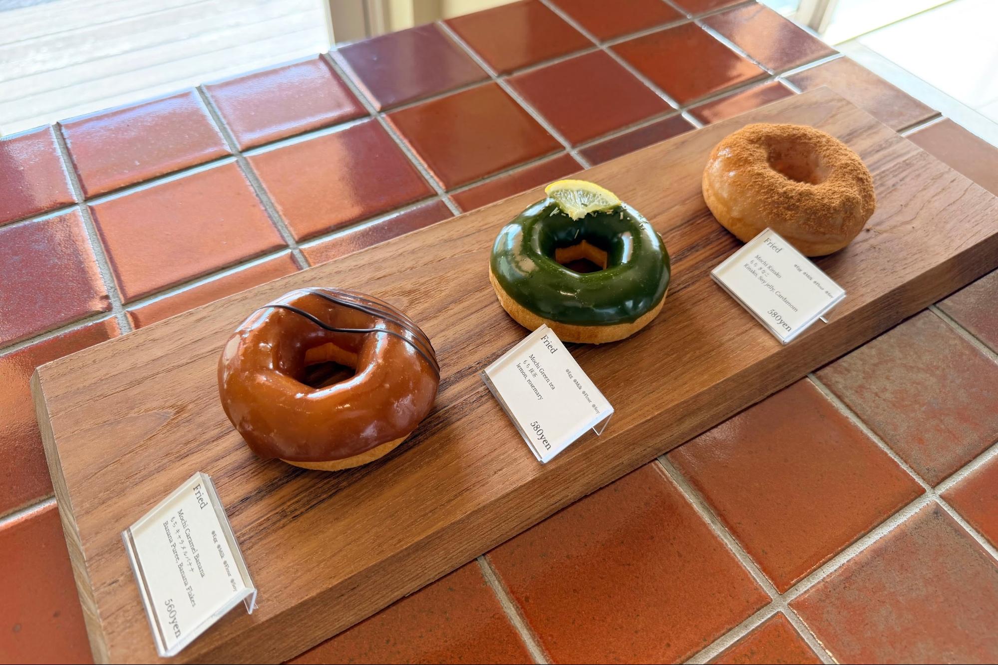 生地にこだわった3種類のドーナツは、季節に合わせたフレーバーも楽しめるケーキのような味わい。揚げているとは思えない軽やかな食感も魅力です。