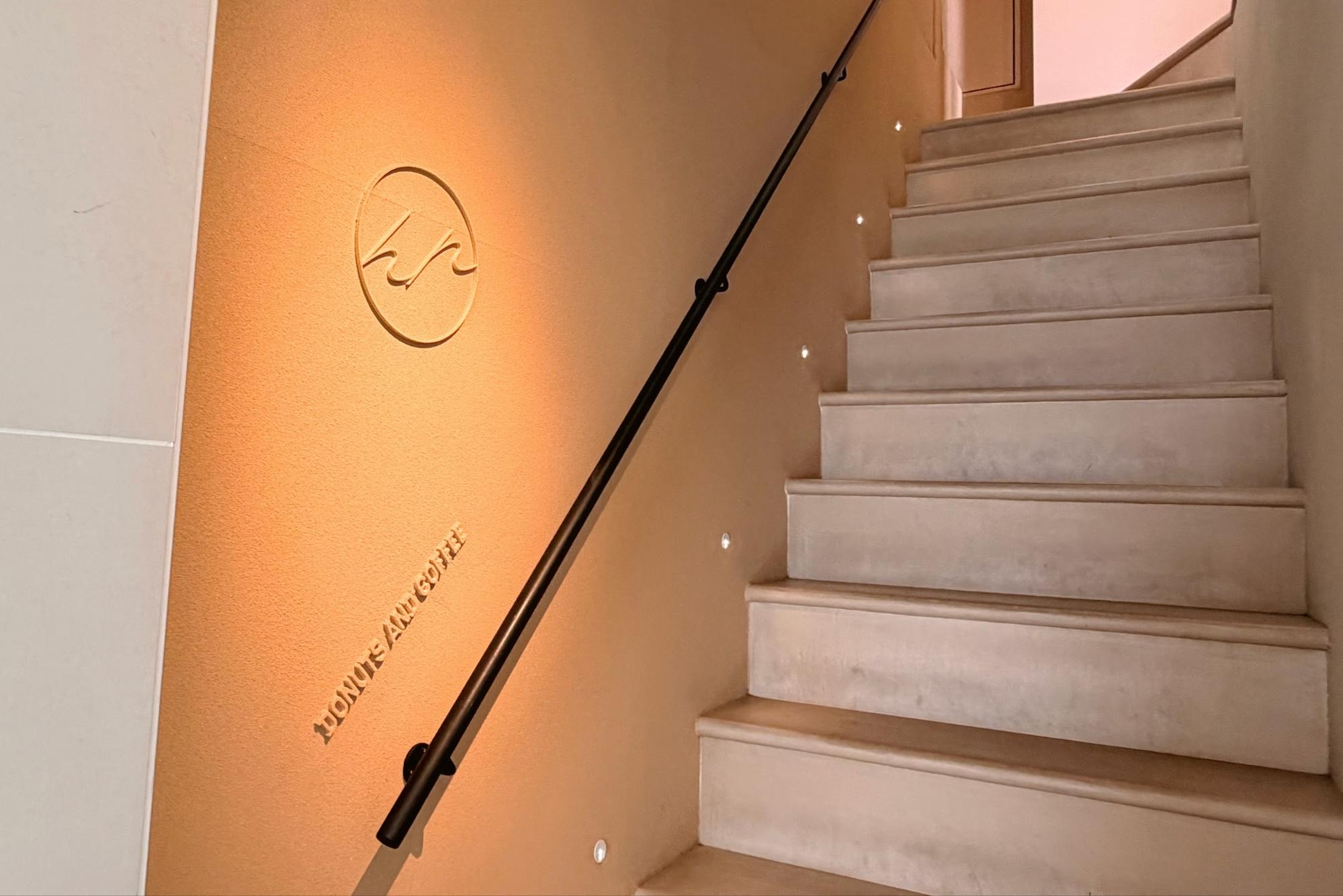階段をのぼると素敵な空間が広がり、ケースに並んだ美しいドーナツに胸が高まります。