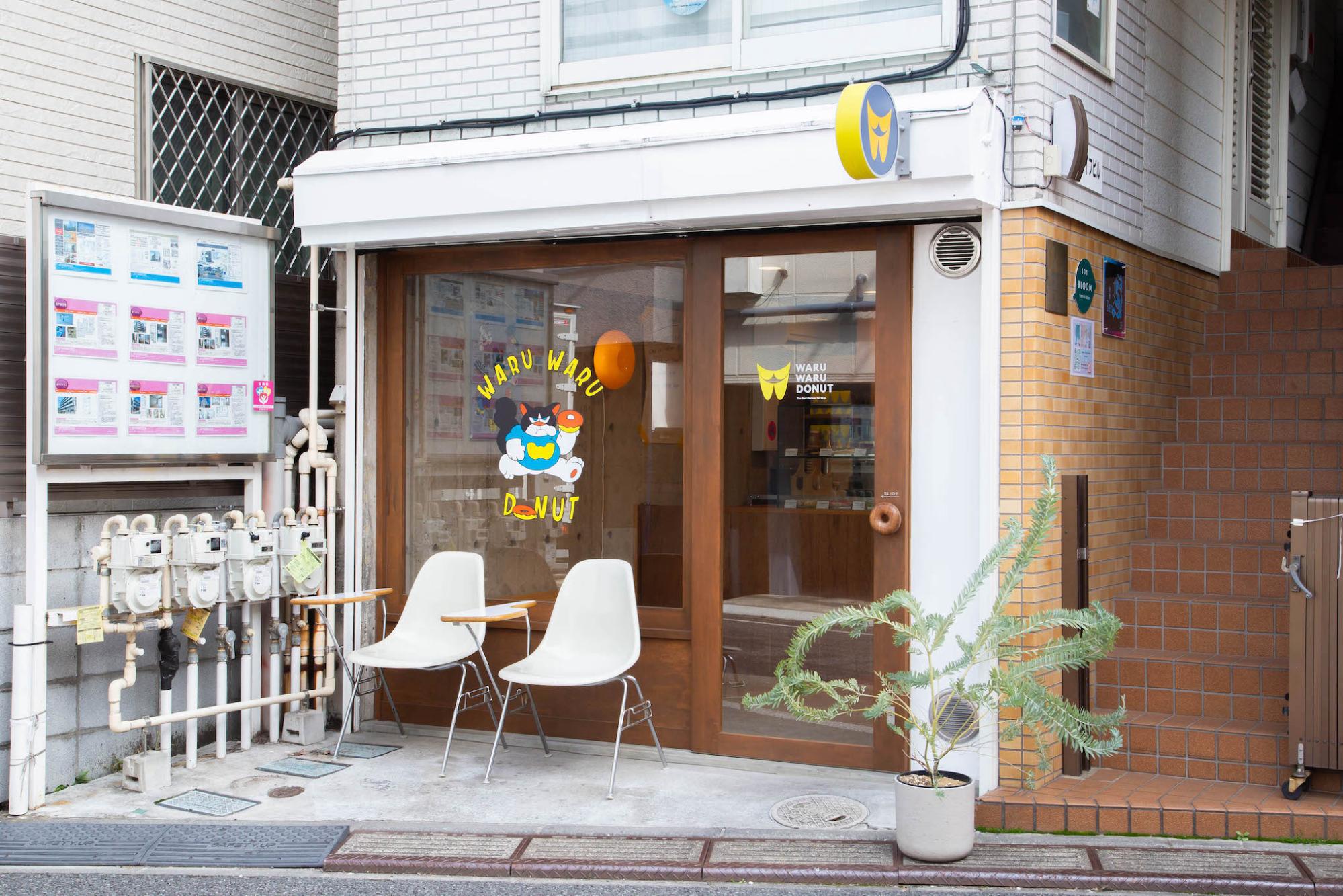 三軒茶屋駅から太子堂中央街を三宿方面へ歩いていくと、ちょっとワルそうな顔をした猫のイラストが印象的な「WARU WARU DONUT」。
