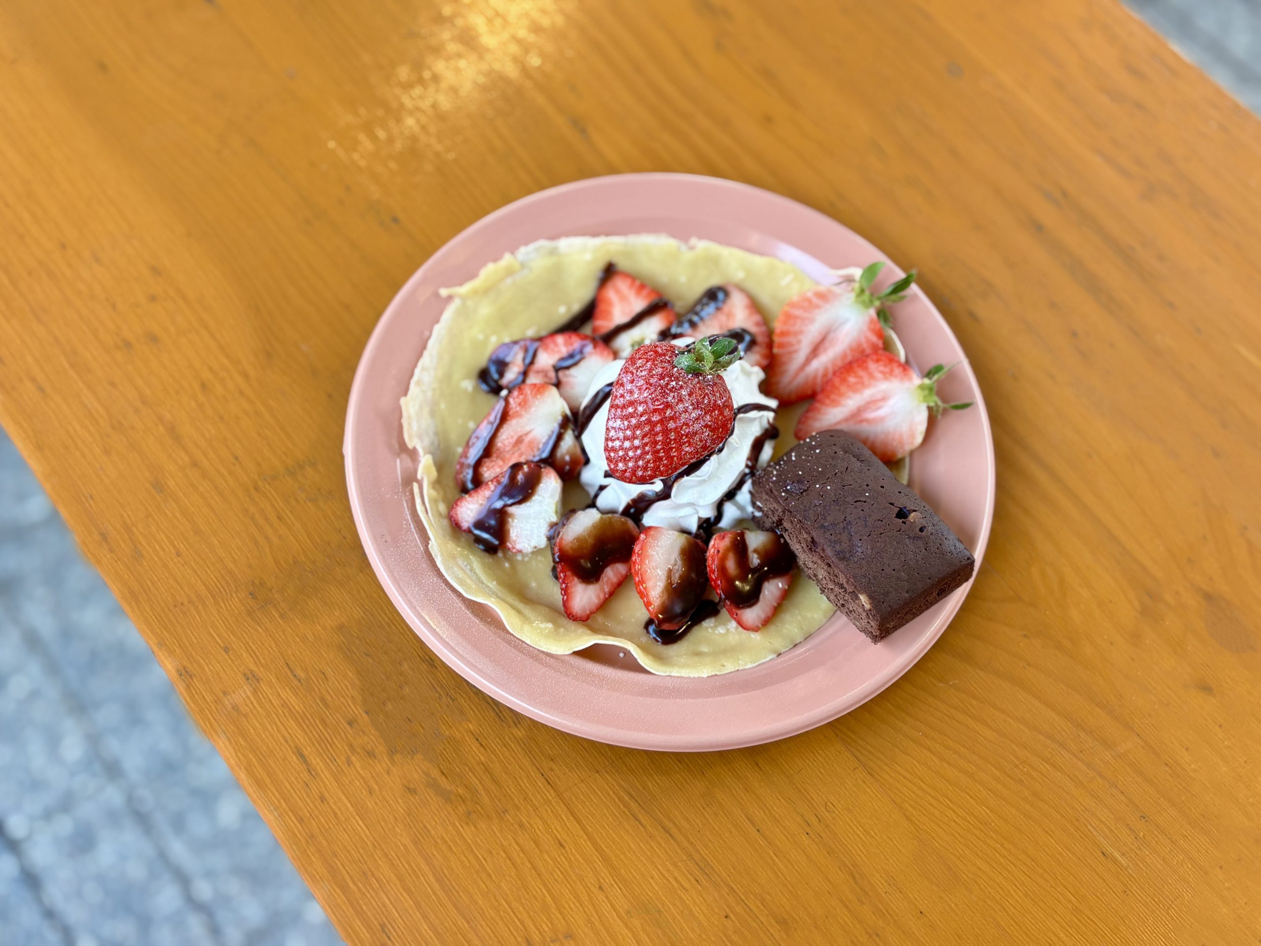 果実感をしっかり残したいちごと、なめらかなクリームが層をなす、王道ながら完成度の高いクレープです。