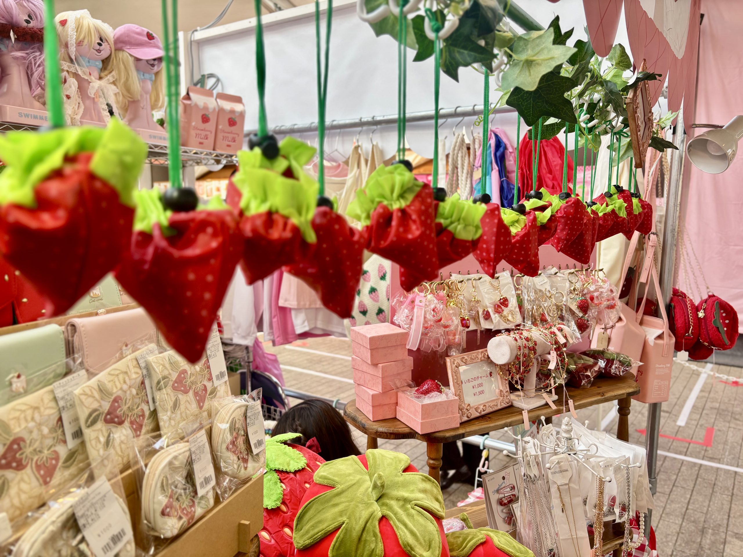 真っ赤ないちごをモチーフにした装飾やフォトスポット、ずらりと並ぶスイーツブースからは、焼きたての香ばしさと甘酸っぱい香りが漂い、歩いているだけで気分が高まります。