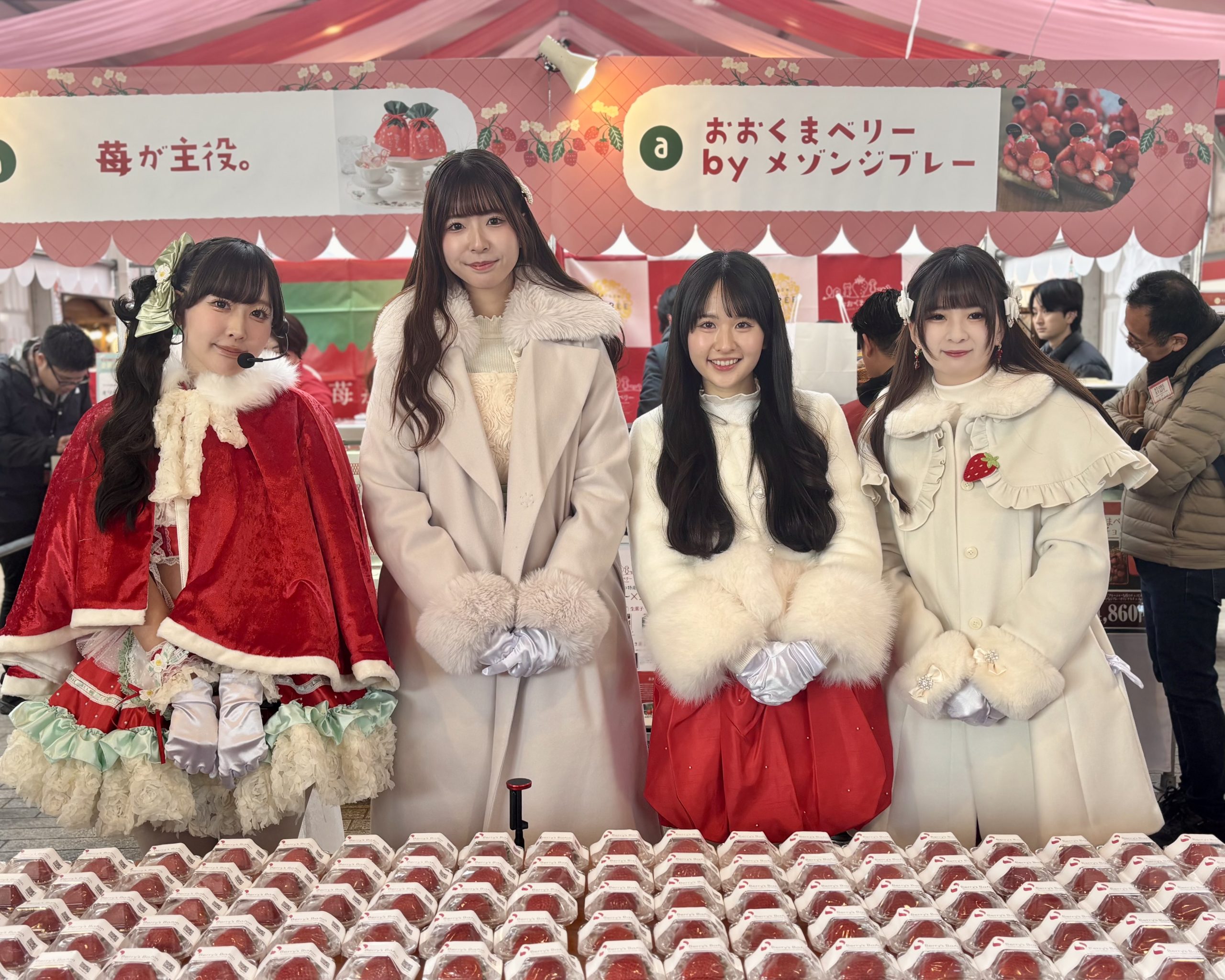 全国のいちごをPRする「ミスいちご」の皆さまによるブランドいちごの無料配布