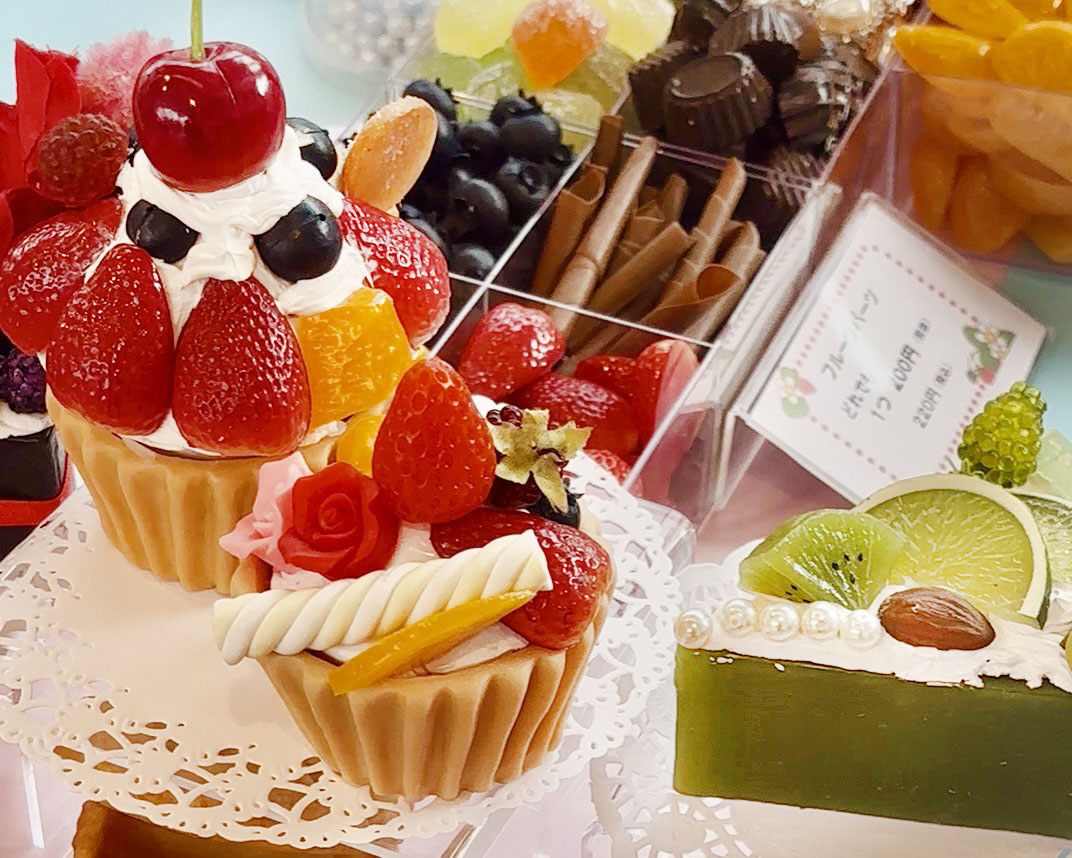 紙粘土や樹脂パーツを使ってケーキやシュークリーム、カップケーキを型に本物のような果物のパーツでデコレーションし、「本物そっくり」のデコスウィ-ツを作れるコンテンツです。