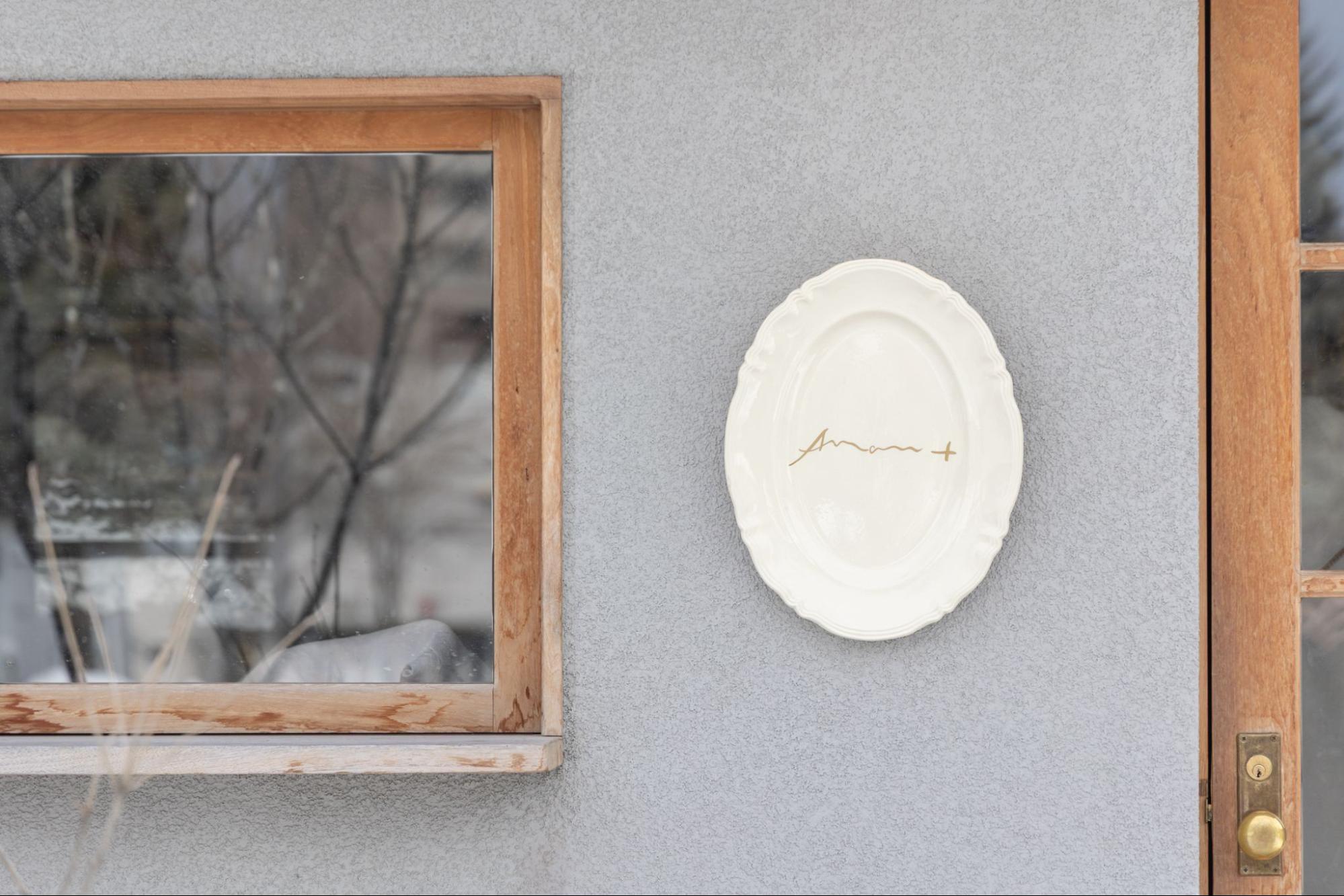 グレーの外壁に、白いお皿が看板代わりというかわいらしいお店です。