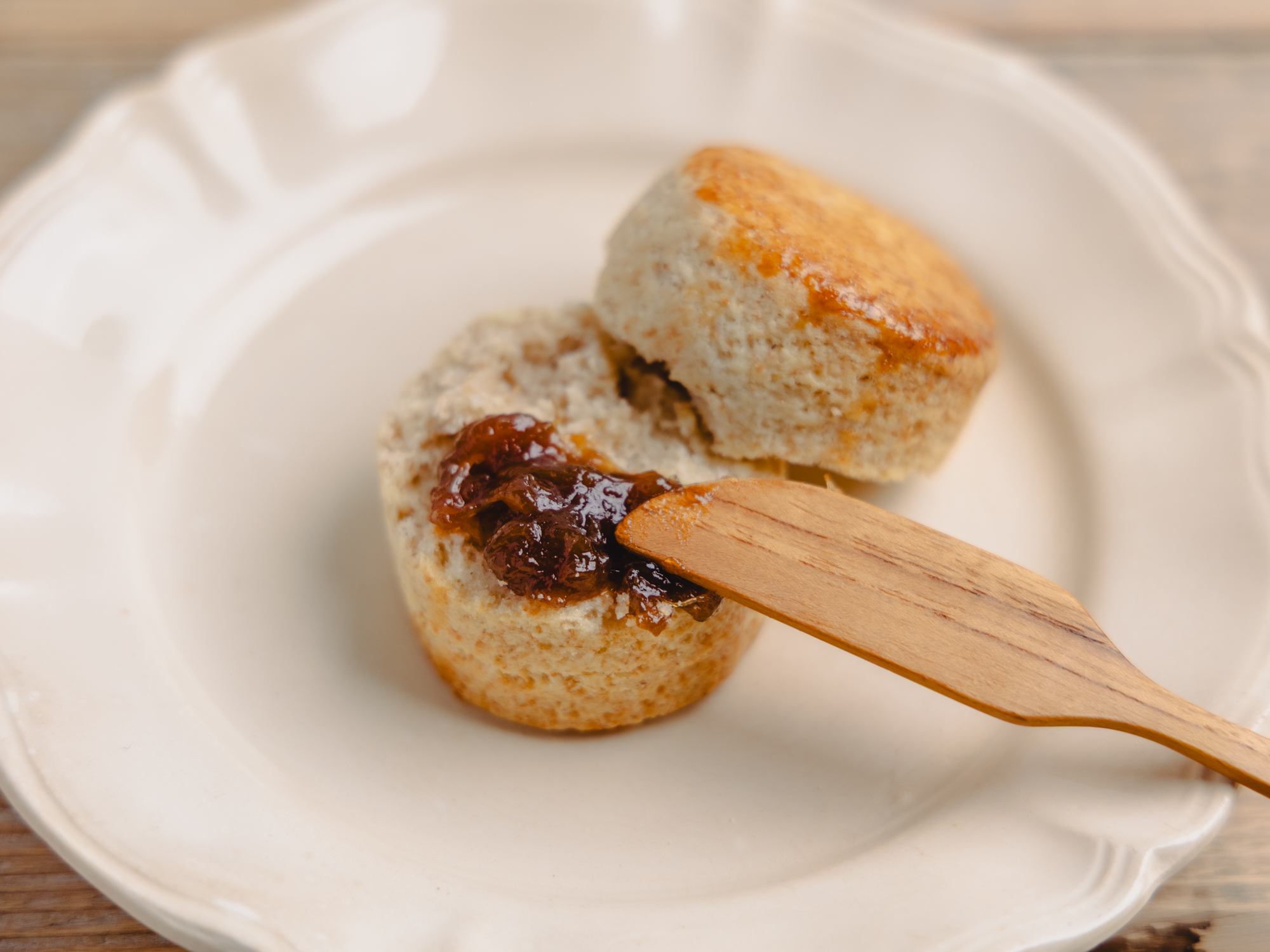 香ばしい小麦の香りに、バターのコクとやさしい甘みが、ジャムの甘酸っぱさとよく合います。