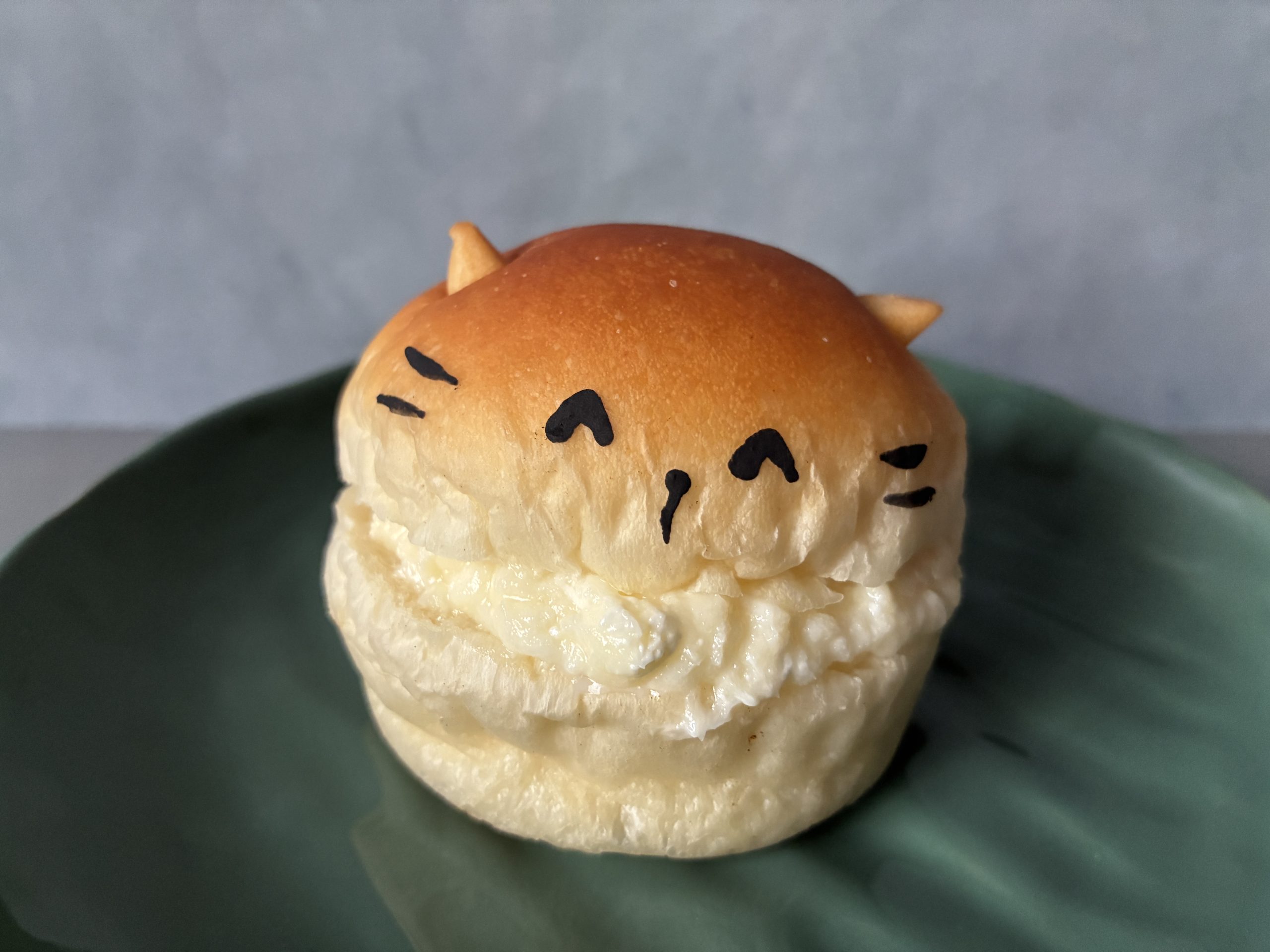 手のひらサイズで、歯切れ良い素朴な味わいのパンに、ミルキーで舌触りなめらかな練乳クリーム入り。ねこの表情も色々あるので、その日の気分で選ぶのも楽しそう。