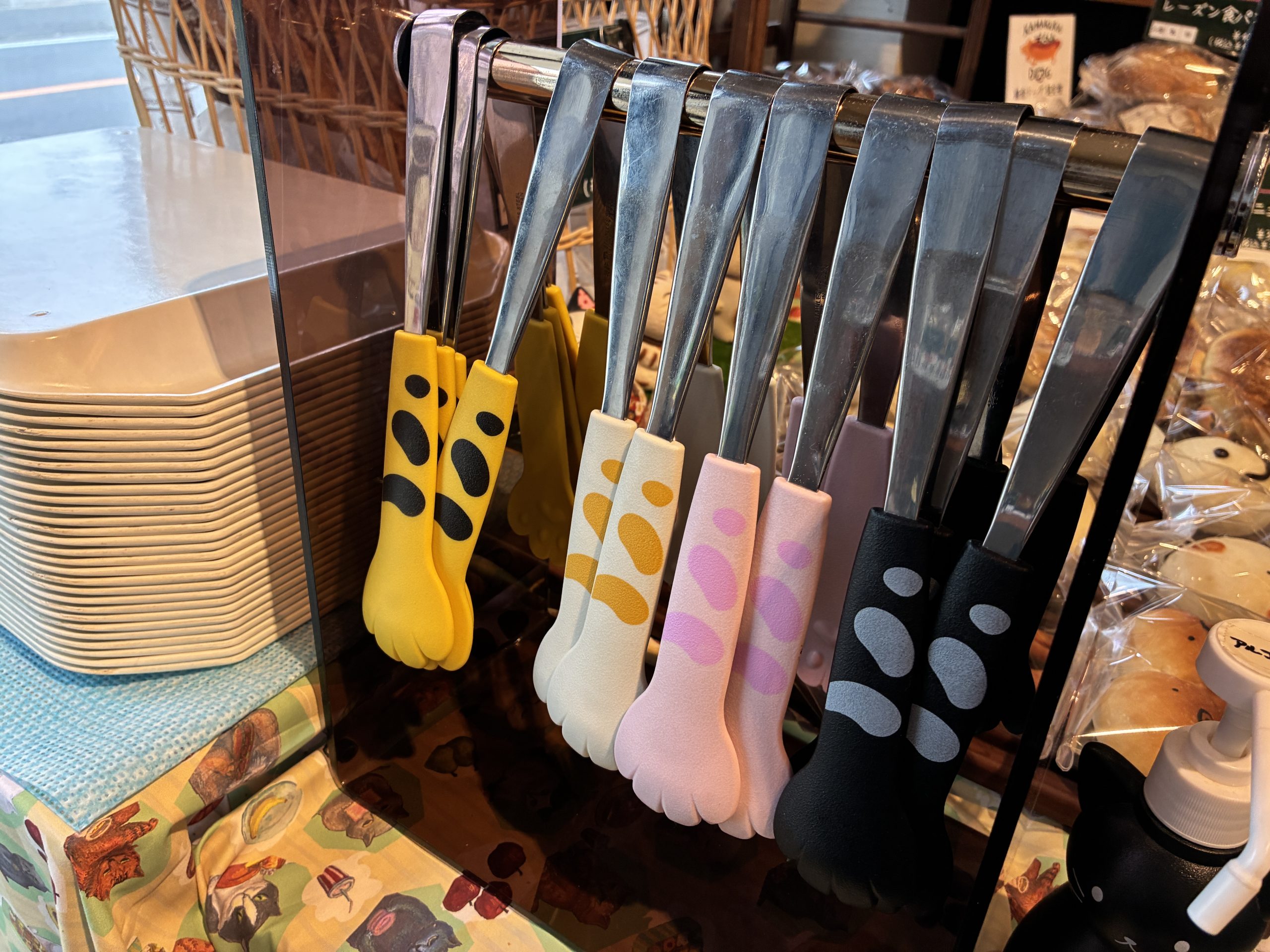 シェフご夫婦がねこ好きということもあり、店内にはいたるところにねこのオブジェがあります。トングが猫の手になっているところも可愛らしいポイント。