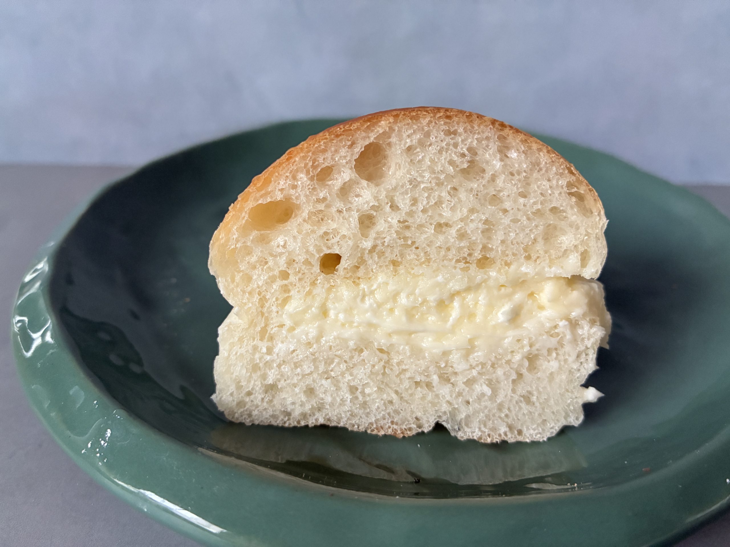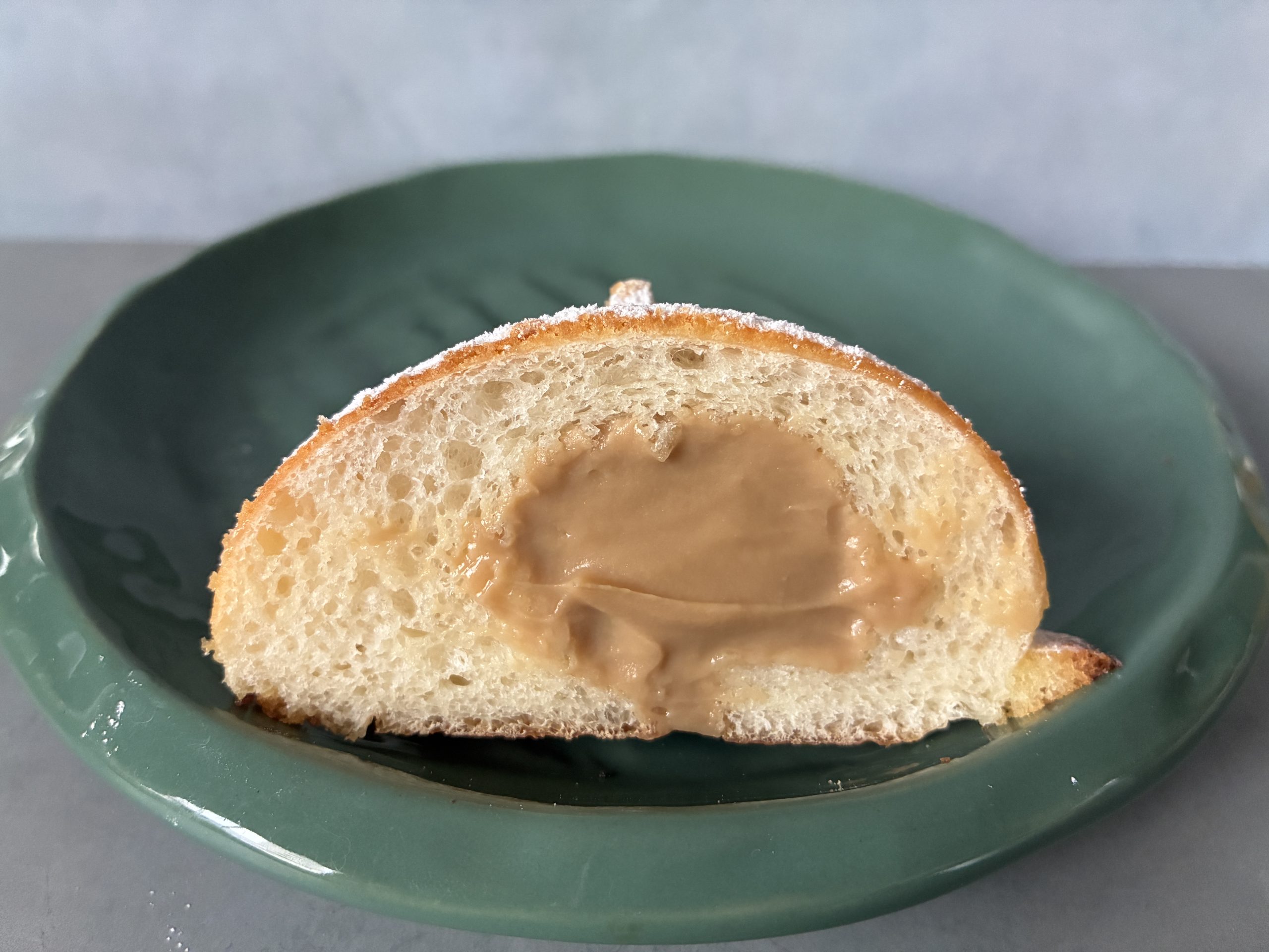 カフェオレクリームはほんのり苦みがあり、少し大人な味わい。全体としてはやさしい甘さのおやつパンで、なめらかな口あたりが印象に残ります。