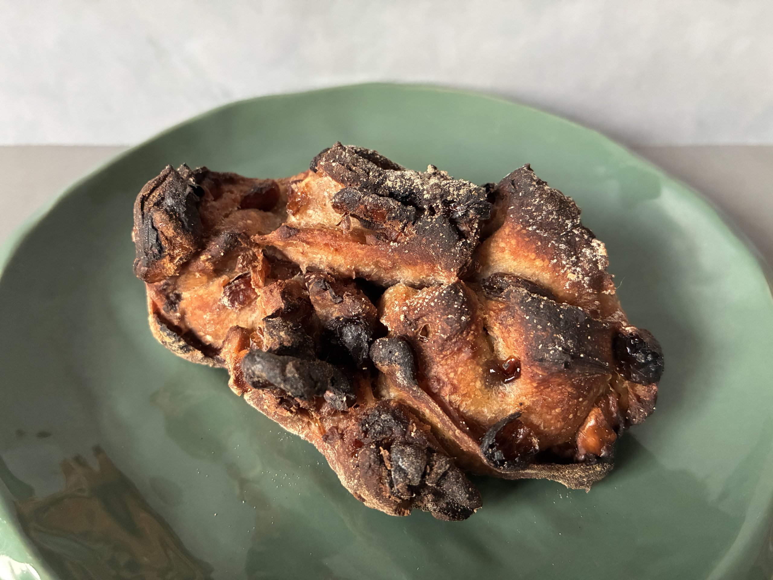カンパーニュ生地に、レーズンとクランベリー、さらにクルミを合わせた一品。外側はカリッと、中はサクッとした軽やかな食感です。クルミの香ばしさに加え、しっかり焼き込まれたクラストの香ばしさが重なり、この風味がかなりあとを引きます。