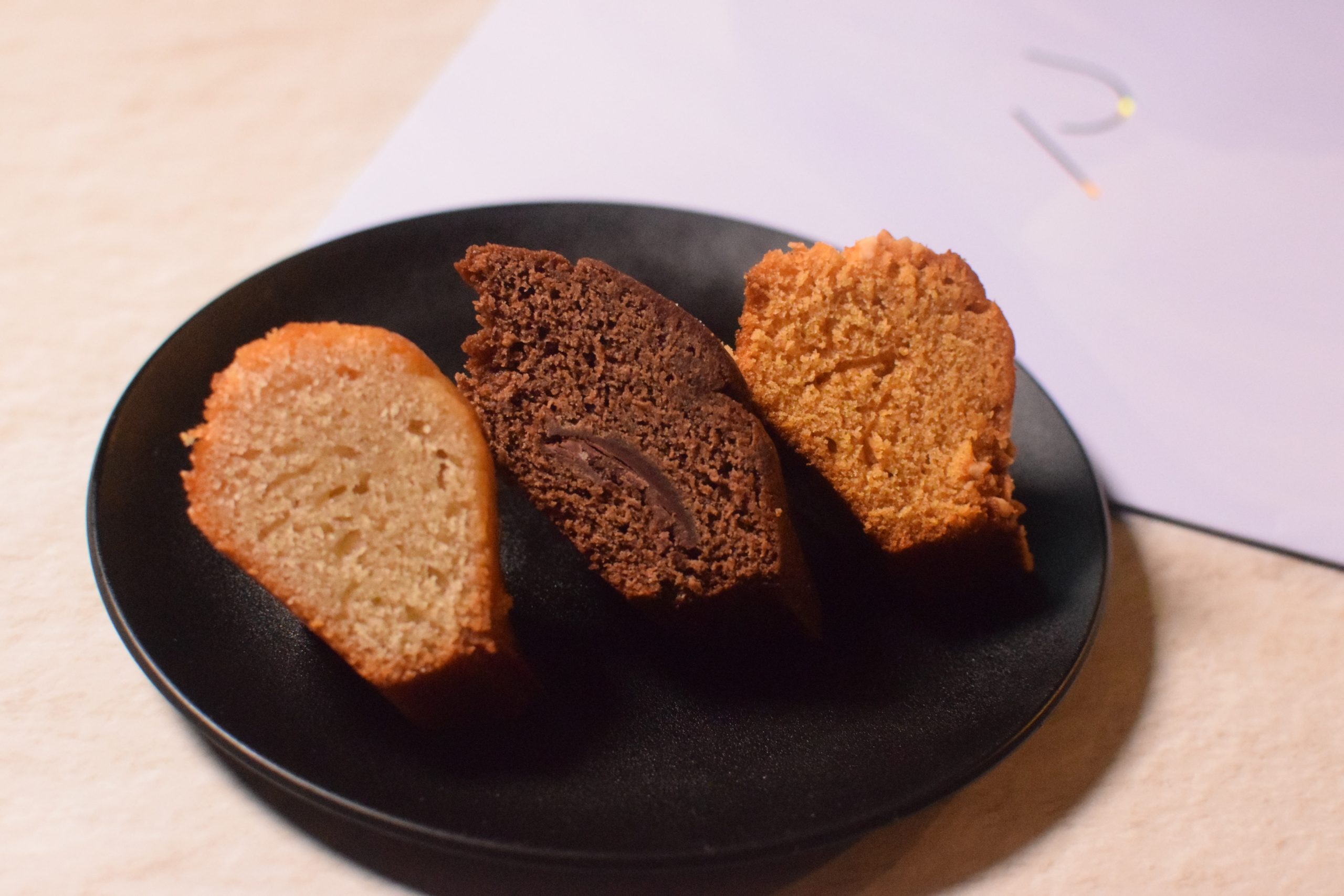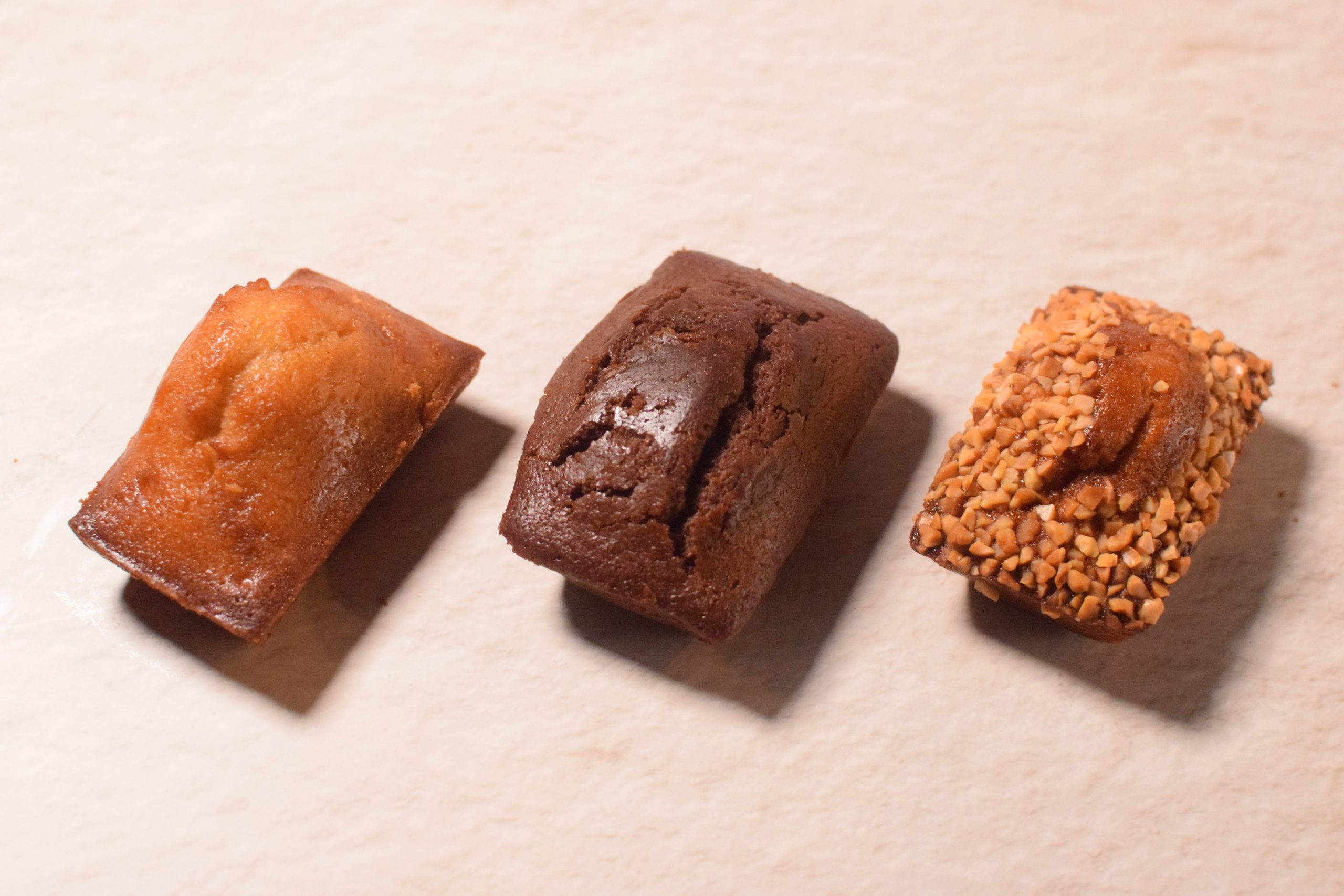左から「フィナンシェ プレーン」¥350(税込)、「フィナンシェ ショコラ」¥370(税込)、「フィナンシェ キャラメル」¥370(税込)