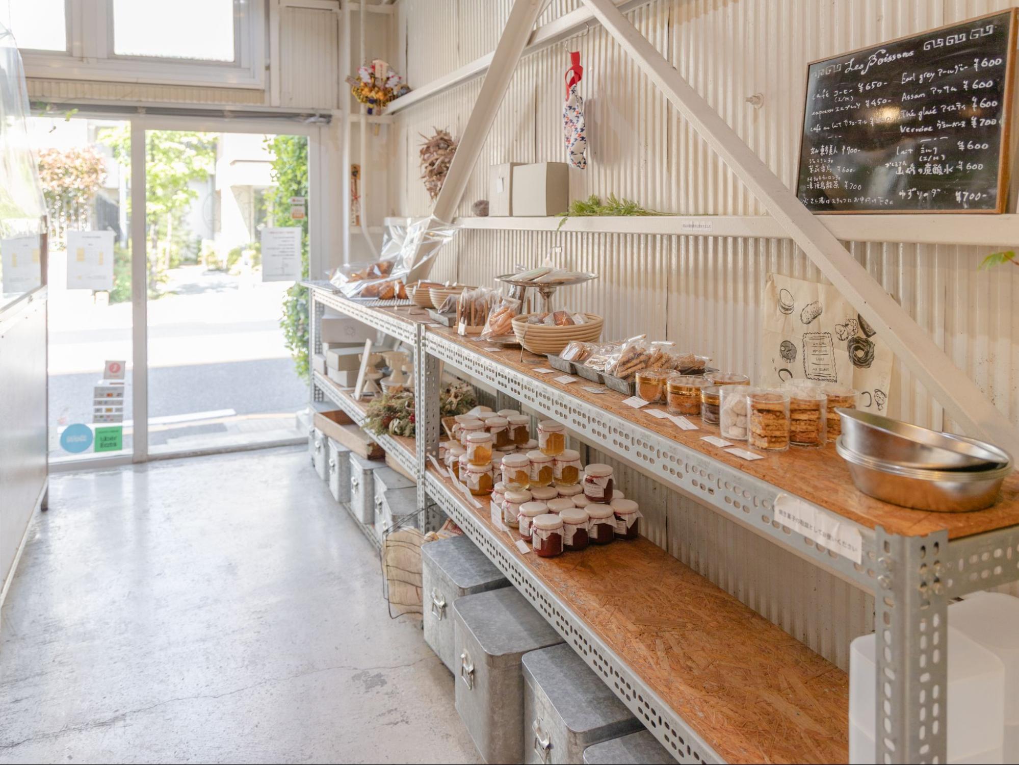 JR吉祥寺駅から徒歩約20分、「A.K.Labo」は、ツタに覆われた白い外観が目印のお店。パリの街角にあるパティスリーのような佇まいが魅力的です。店内に足を踏み入れると、焼き菓子やパンがディスプレイされた棚と、ケーキが並ぶショーケースが出迎えてくれます。
