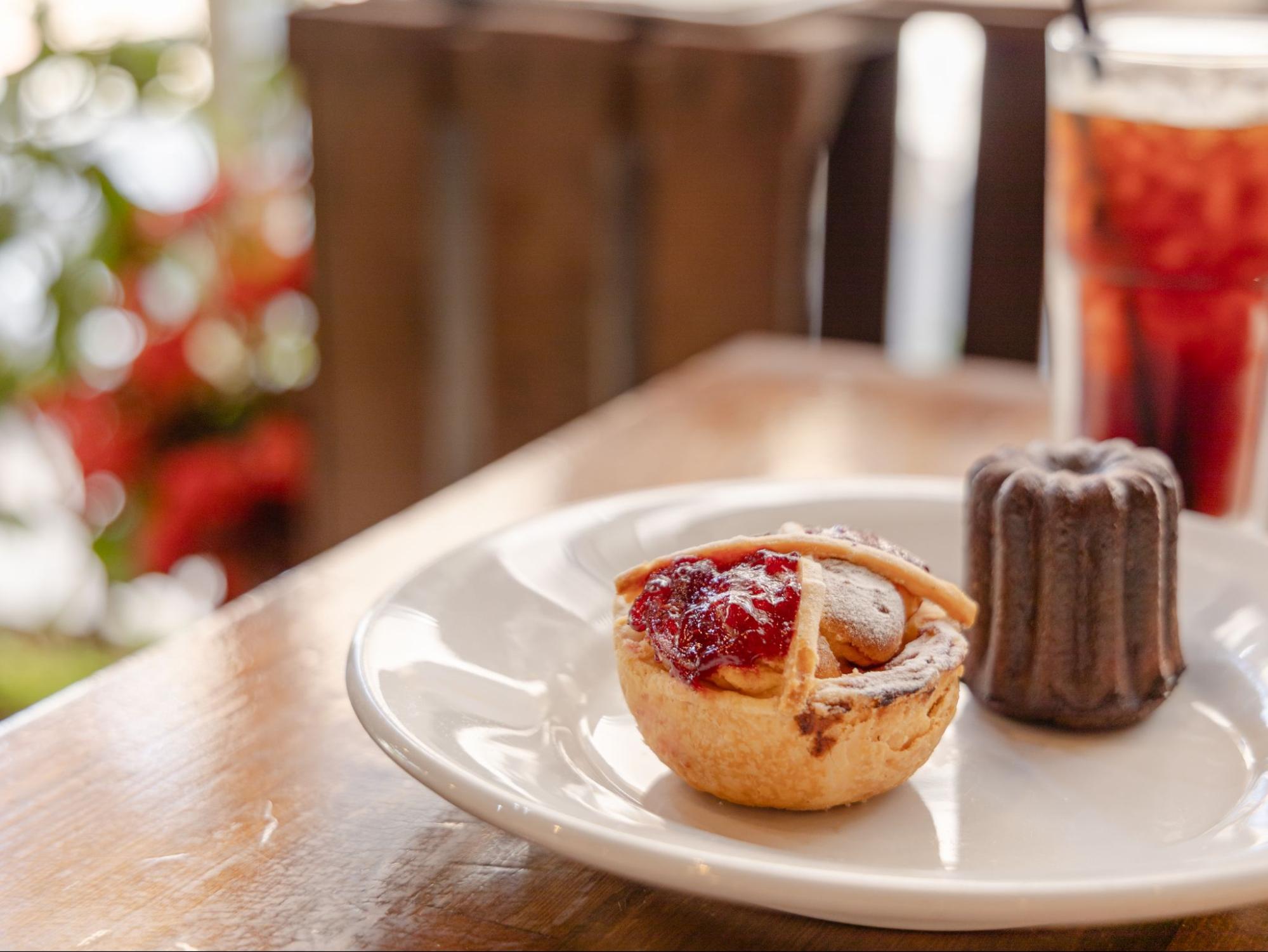 フランスの橋の名を冠した小さな丸いパイ。トップには鮮やかなラズベリージャムが艶やかに塗られ、さらに、中にもフレッシュなラズベリーが隠れていて、ひと口ごとに甘酸っぱさが弾けます。ラズベリー好きにはたまらない一品です。